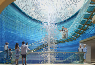 On Deck 8, The Shores is the place where the ocean meets land, a zone that’s inspired by the ways people enjoy the seaside including piers, boardwalks and beaches. An impressive three-deck-high fish school art installation rises from Deck 6 all the way to Deck 8 to bring guests up from the Currents below to the surface.